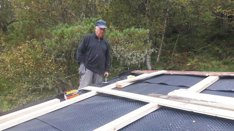 Omskoleringen gikk fint, og i løpet av to korte arbeidsdager ble det lagt nytt tak på Wernerhytta. God planlegging og en god byggeleder gjør susen. Taket er klart og det mangler bare torv. Vi håper at flere vil være med oss når taket skal dekkes med torv.